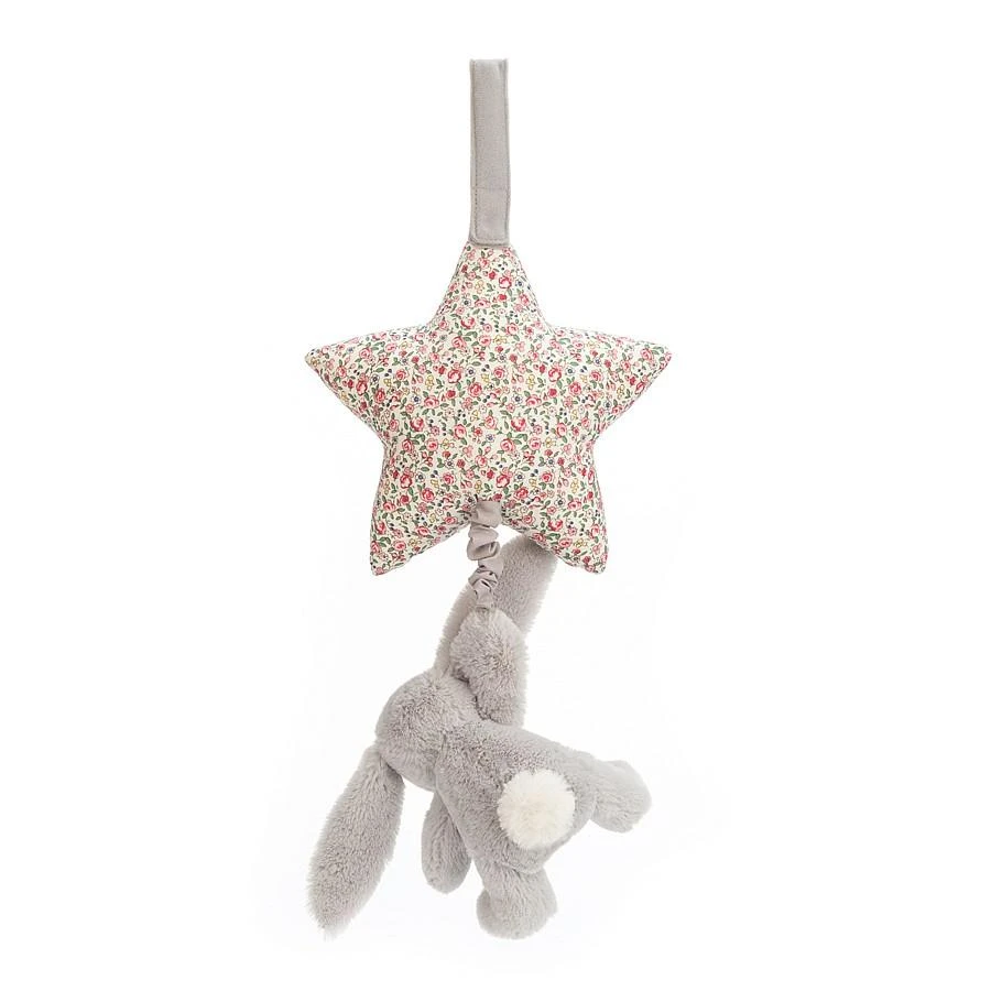 For sweet dreams and snuggles aplenty, try the Blossom Silver Bunny Musical Pull. This bonny pull fixes onto the buggy or cot, and plays ‘Hush Little Baby’ when tugged! Our bunny pal is grabbable in soft grey fur, with flowery ears that match the pretty squidgy star.