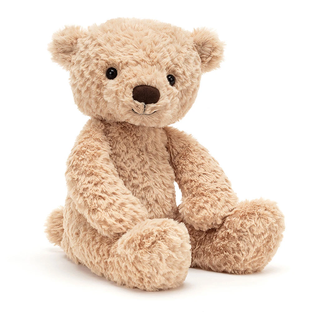 Finley is your classic looking teddy bear, with soft brown fur. He is very well behaved, loves cuddles and doesn’t mind being squeezed tightly! Thanks to his beany bottom, he will sit upright with his paws out in front of him while you’re out and about, patiently waiting for you to return home!