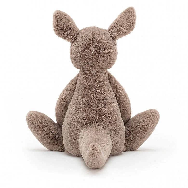 Kara Kangaroo has a bonza surprise – she’s brought along her jumping joey! This mocha mama has soft, springy feet, long leafy ears and a huge tail for balancing! Baby pops out of her cosy tummy pouch, ready for the veggie barbie!